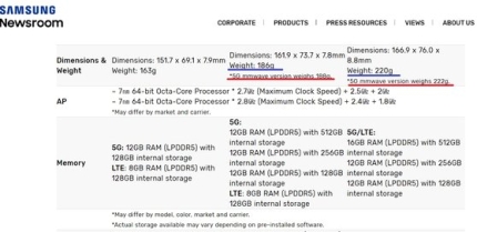 국내에서 판매할 S20 플러스와 울트라 모델이 미주 판매용보다 각각 2g씩 가벼운 것으로 확인되었습니다.