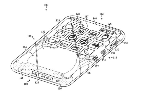 이 특허는 '유리로 덮여 있는 전자 장치'라고 라벨이 붙어 있습니다.